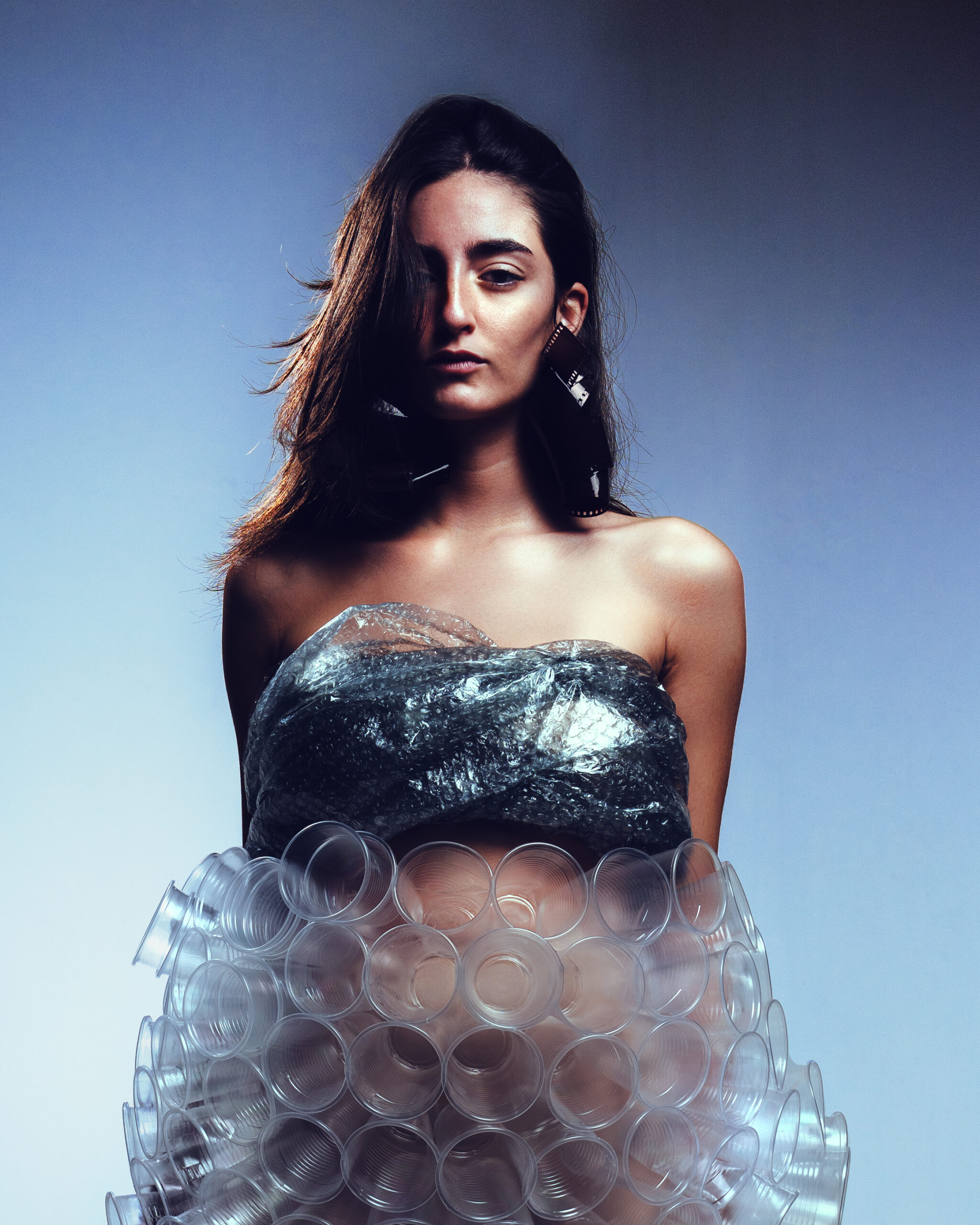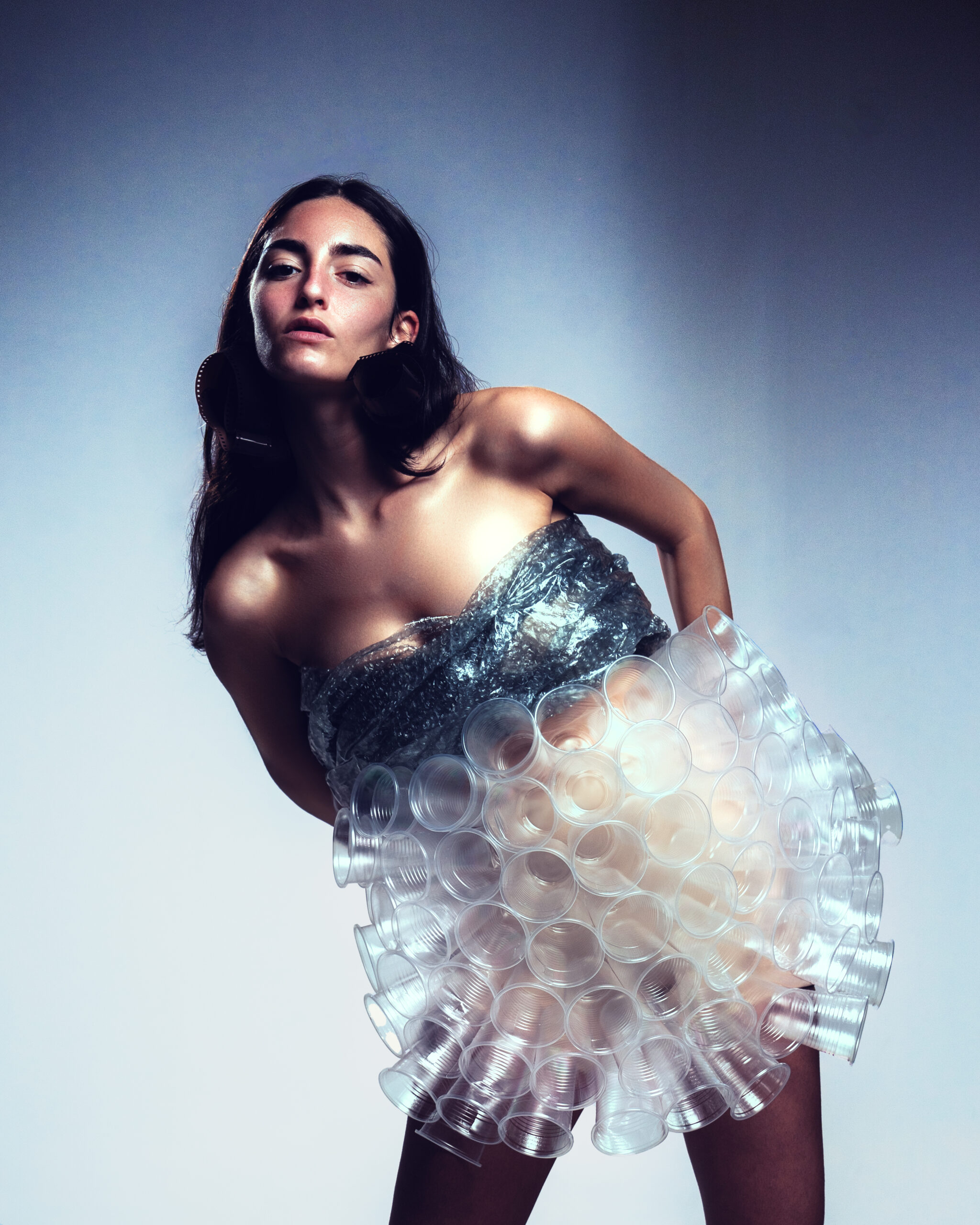 /These photoshoots repurpose everyday objects, transforming them into true fashion pieces and creating unique, conceptual silhouettes.